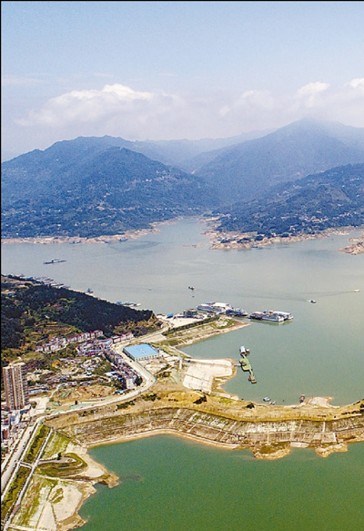 这是6月2日在湖北省秭归县茅坪镇拍摄的三峡旅游母港及木鱼岛水域。