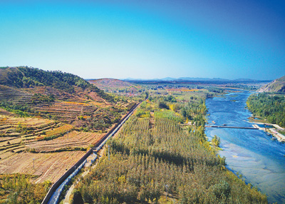 图为卢龙县潘庄镇桃林营村附近的主干渠和青龙河(右)并行呼应。