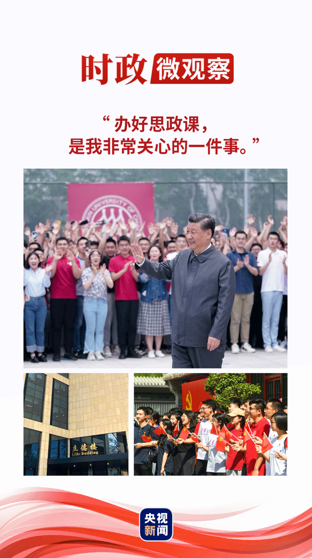 上这堂课的立德楼,取名自“人无德则不立”,蕴含了“育人的根本在于立德”的朴素道理。落实立德树人根本任务,思政课是关键课程。习近平总书记说:“办好思政课,是我非常关心的一件事。”