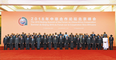 初秋的北京,天安门广场和长安街两旁鲜花盛开,中非合作论坛成员国国旗、非洲联盟会旗和印有中非合作论坛会徽的旗帜迎风飘扬。人民大会堂北门外,礼兵分列红地毯两侧。16时许,出席论坛峰会的外方领导人陆续抵达。习近平在北大厅热情迎接,同他们一一亲切握手,互致问候。随后,中外领导人集体合影。