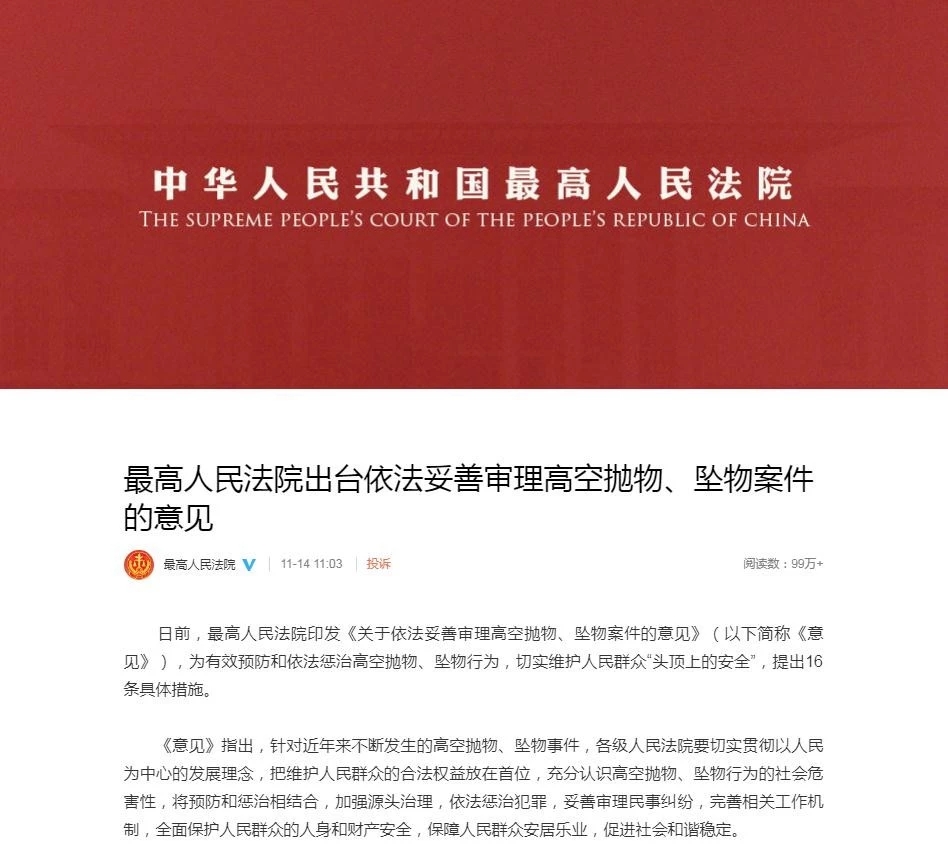 关于高空抛物,最高人民法院发话了!
