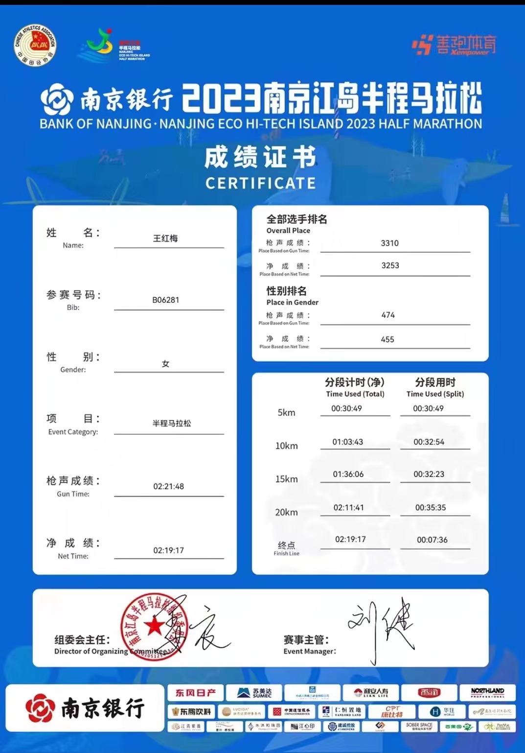 4月16日上午8点,2023南京江岛半程马拉松在南京生态科技岛鸣枪起跑。约10000名选手沿江出发,一路感悟长江文化内涵、饱览独特江岛魅力风光,直属第八党支部王红梅老师参加了此次比赛!