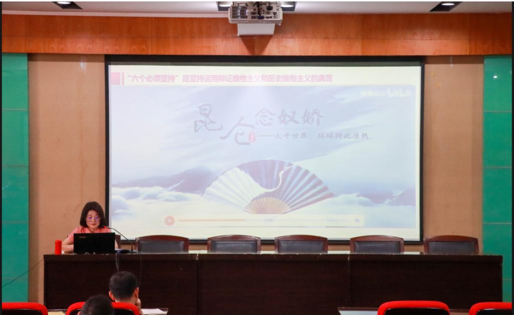 李华琼在报告中指出“六个必须坚持”深刻揭示了习近平新时代中国特色社会主义思想的理论品格和鲜明特质。她重点阐释“六个必须坚持”既有辩证唯物主义的理论底蕴,又有历史唯物主义的宏大视野,生动体现了马克思主义世界观和方法论的统一,是坚持运用辩证唯物主义和历史唯物主义的典范。最后李教授结合主题教育的目标要求指出每一名共产党员,每一名知行人都要通过这次主题教育,将每一项工作的理念、思路、举措,放在“六个坚持”的世界观和方法论中去审视、去检验,突出知行合一、学以致用,不断提升每位知行人履职尽责、教书育人的本领,为培育堪当民族复兴大任的时代新人,为中国式现代化的湖北实践提供坚实人才支撑。