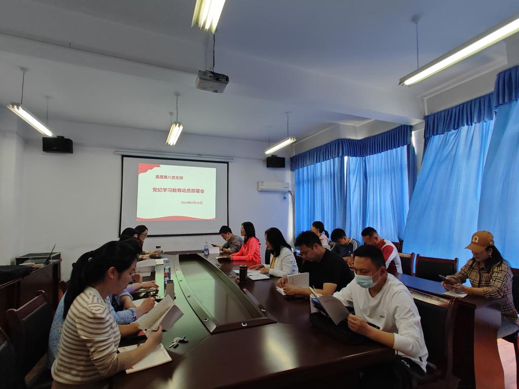 4月24日,直属第八党支部在知远楼410会议室召开党纪学习教育动员部署会,部署支部党纪学习教育工作。全体党员参会,会议由杨旭书记主持。
